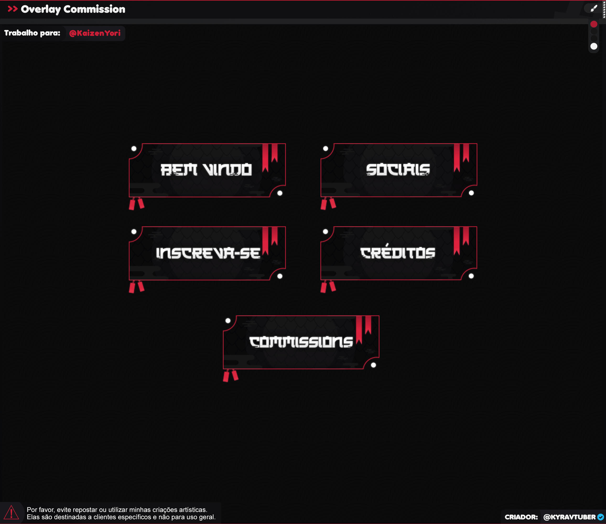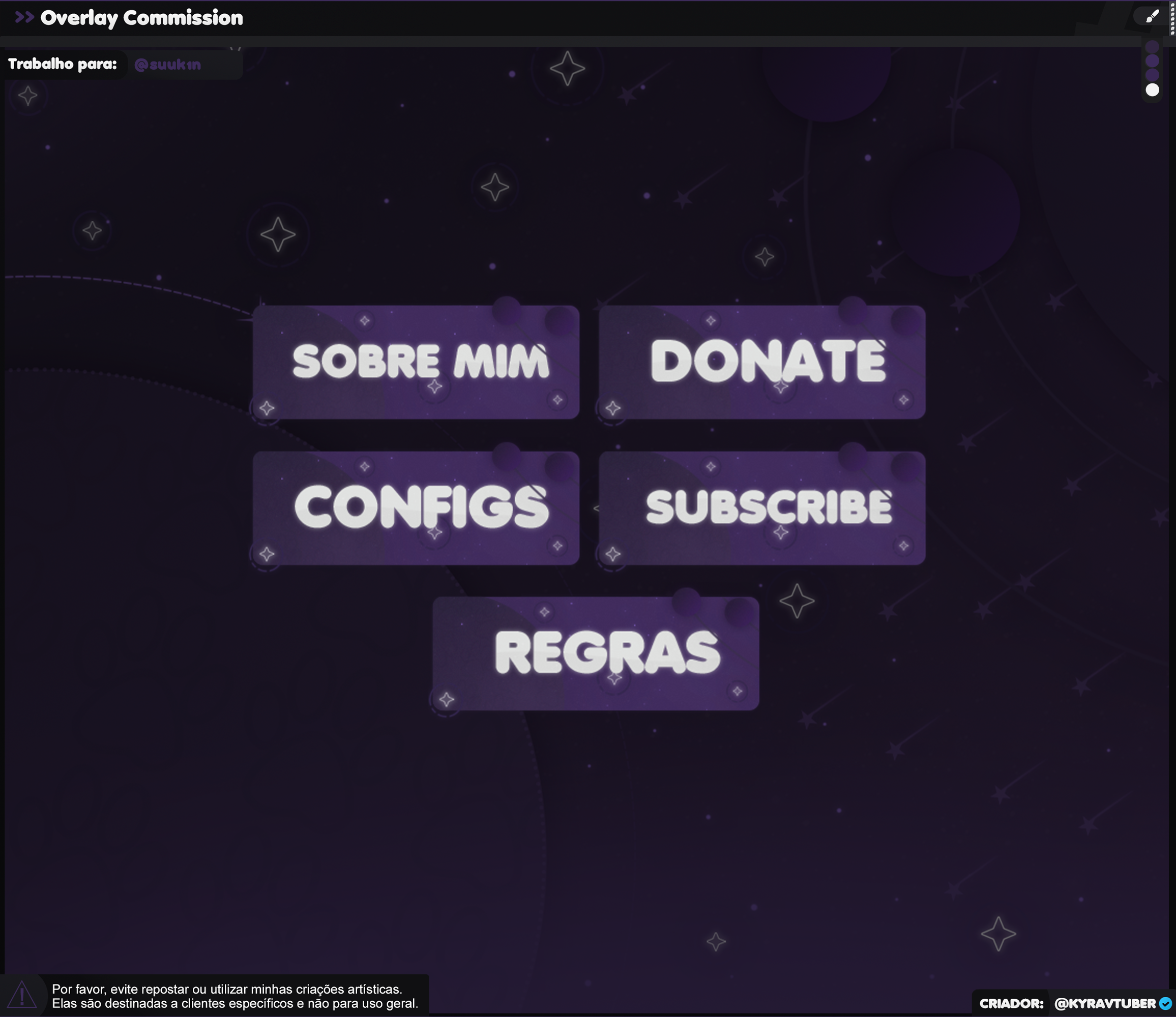 ▸ Caso precise deseje algo específico para seu projeto sinta-se a vontade para entrar em contato com o artista para criar uma overlay personalizada criada do zero para seu projeto!