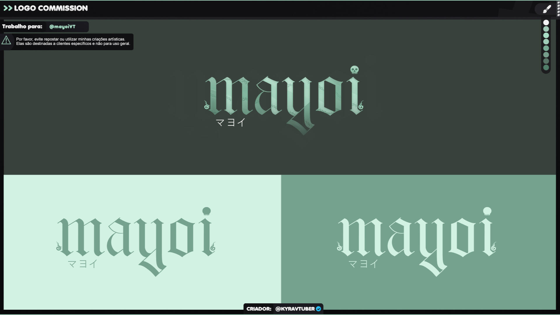 Eu achei o sistema de Ticket pelo Discord muito interessante e organizado. O Kyra conseguiu traduzir muito bem as coisas do meu personagem em um design de logo e fiquei muito feliz com o resultado!
