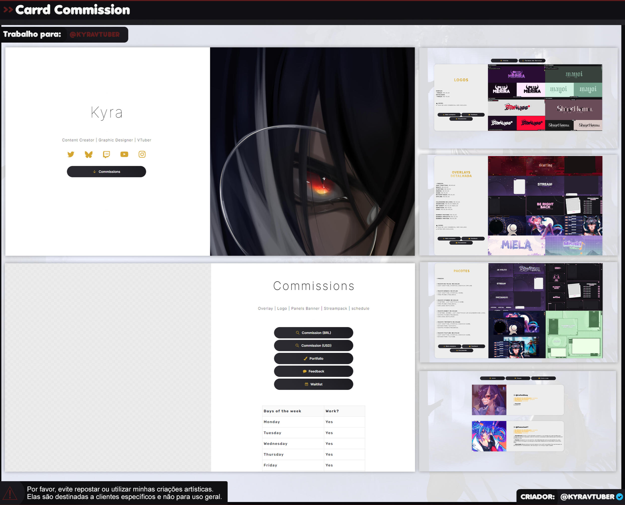 ▸ Página única: R$ 20,00▸ Pacote VTuber: R$ 50,00
